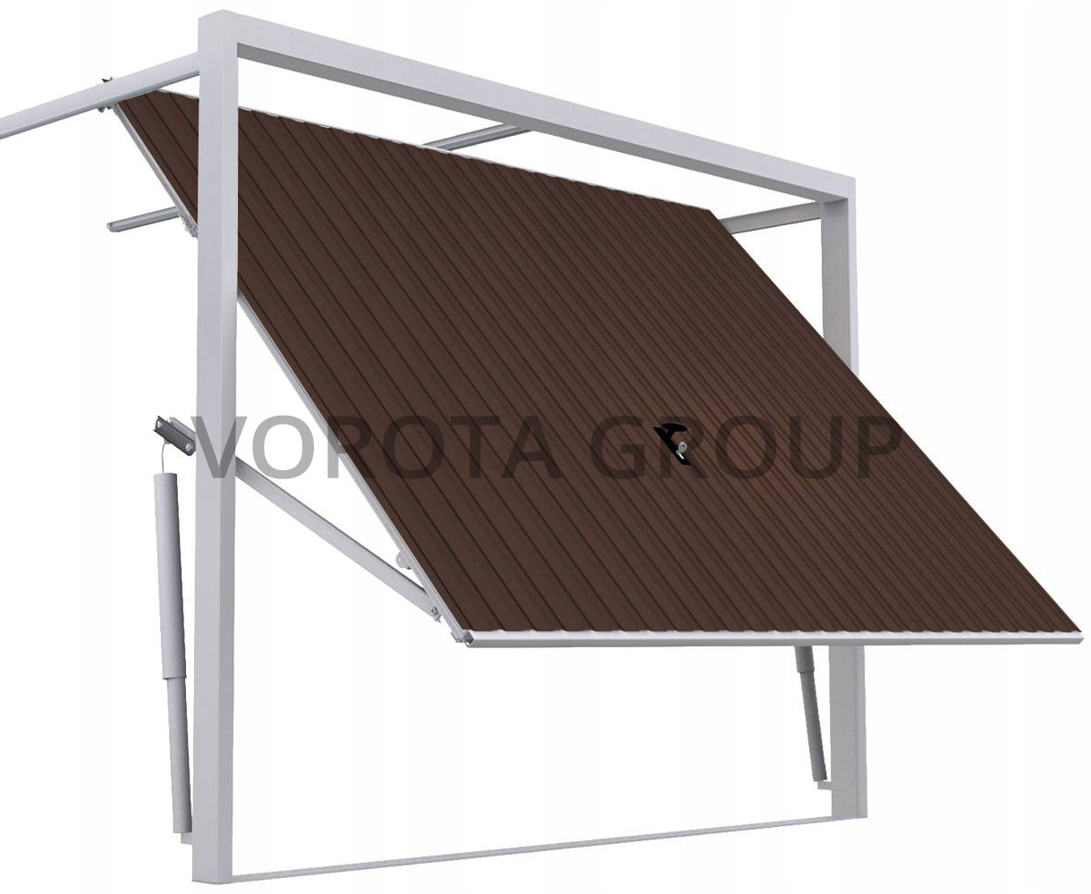 - Подъемные или подъемно-поворотные. Этот вариант представляет собой монолитный цельный металлический щит, который закрывает собой весь проем. При помощи установленного каркаса створка размещается параллельно потолку на 90° от изначального положения. Полотно чаще всего является утепленным.